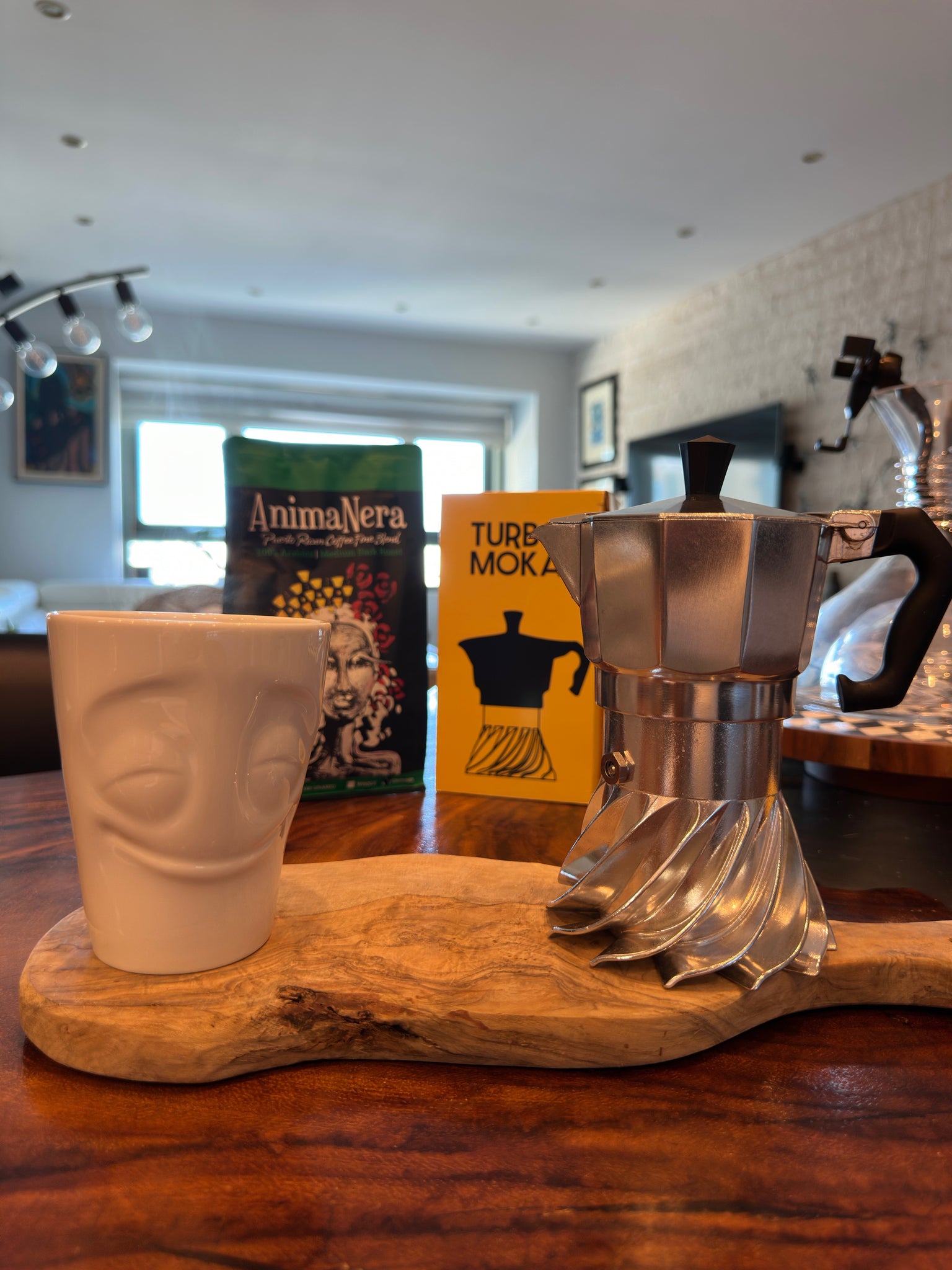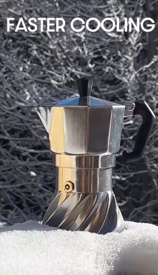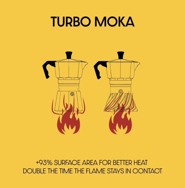 The moka pot reimagined. Fatser, smarter, and beautifully designed. Turbo Moka is a true Made in Italy, entirely designed and manufactured in Italy. It's produced in Piedmont using the traditional lost-wax casting technique. Every moka is the result of a precise and artisanal process, celebrating italian excellence in both form and function. By applying principales of thermodynamics, Turbo Moka achieves faster brewing with less energy (-30%), especially on gas stoves, without compromising on flavor. Turbo Moka works on induction (with adapter) electric and gas. 3 cups (4.4oz.). Taste-approved by "Nonni" (the grandfathers)